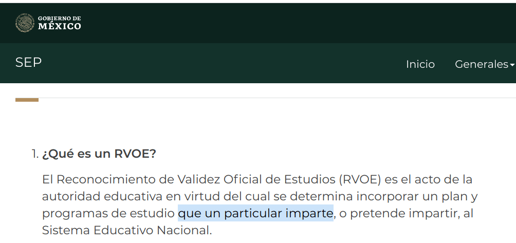 un RVOE. Éste es un requisito indispensable para la emisión de una