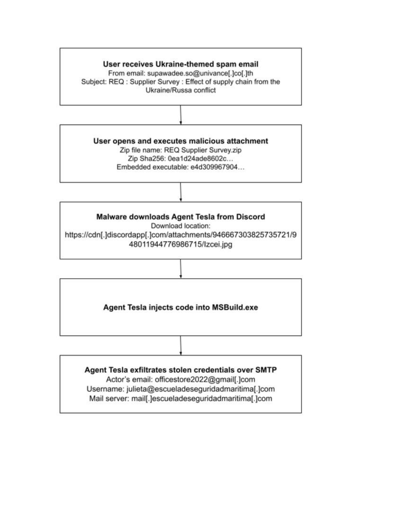 El 1 de marzo, Infoblox observó una campaña de malspam que utilizaba mensajes relacionados con la invasión rusa de Ucrania. La campaña de malspam estaba tratando de atraer a los usuarios para que descargaran un archivo adjunto ZIP cuyo contenido podría descargar Agent Tesla.