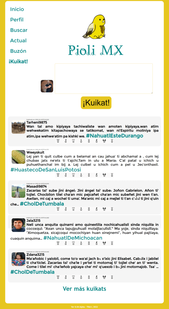 Pioli es un nuevo concepto de red social basada en el microbloggin que permite a los hablantes de lenguas originarias en México, interactuar naturalmente y conectarse con otros hablantes de su mismo idioma y variante lingüística.