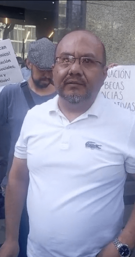 Otro de los manifestantes, que se identificó como David Pérez, aseguró ser profesor investigador del Doctorado Integral en Ciencias Administrativas de la UAM Iztapalapa. Sin embargo, una revisión en los portales de la UAM, solo encontramos homónimos de materias de biología y química. Asimismo, el doctorado mencionado no aparece en los registros del Programa Nacional de Posgrados de Calidad (PNPC), ni en los del Sistema Nacional de Posgrados (SNP).