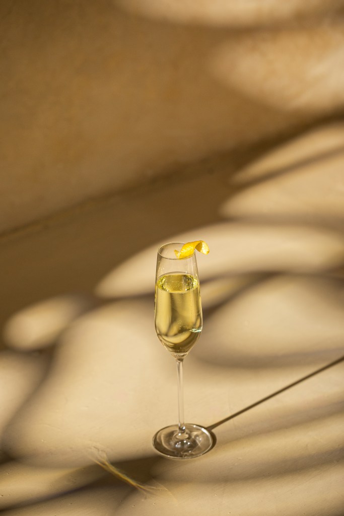 Preparación: En un vaso flauta, mezcla Contraluz y licor de saúco. Completa con champagne brut y decora con un toque de limón.