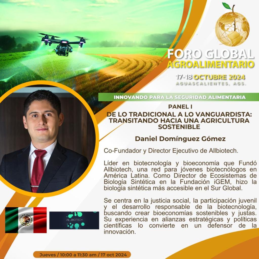| Bajo el lema «Innovando para la Seguridad Alimentaria», este año el Foro Global Agroalimentario se llevará a cabo en formato presencial, los días 17 y 18 de octubre de 2024, en el Centro de Convenciones San Marcos, con dirección: Isla San Marcos, Blvd. San Marcos s/n, C.P. 20210, Aguascalientes, México. Nuestro objetivo es coadyuvar con la vinculación entre los eslabones de la cadena productiva e incidir en la definición de políticas públicas para enfrentar los retos en la producción de alimentos ante una demanda cada vez mayor. |