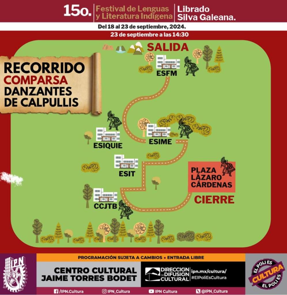 El 15º Festival de Lenguas y Literatura Indígena “Librado Silva Galeana”, realizado por la Dirección de Difusión Cultural del Instituto Politécnico Nacional, se llevará a cabolos días 18, 19, 20 y 23 de septiembre de 2024, en el Centro Cultural “Jaime Torres Bodet” y en diversas Unidades Académicas del IPN.