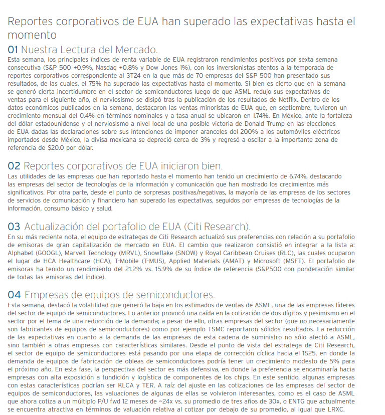 Citibanamex. Panorama Bursátil. Reportes corporativos de EUA han superado las expectativas hasta el momento