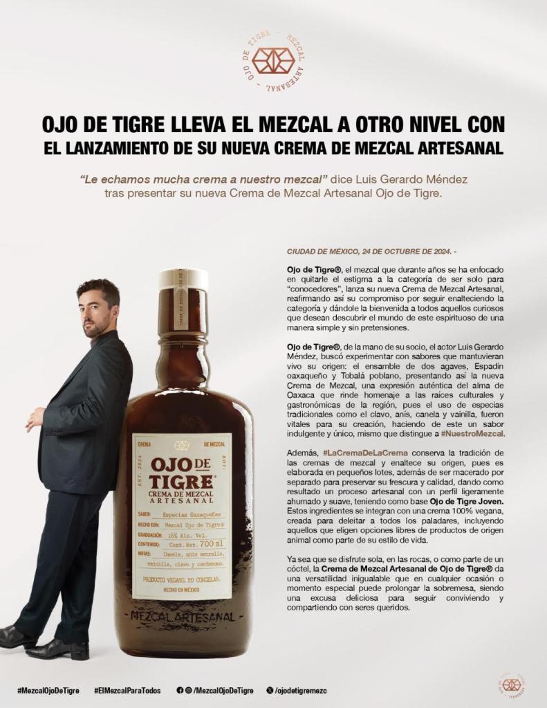 OJO DE TIGRE LLEVA EL MEZCAL A OTRO NIVEL CON EL LANZAMIENTO DE SU NUEVA CREMA DE MEZCAL ARTESANAL