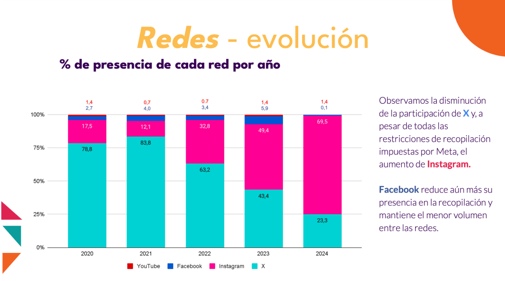 Instagram se ha consolidado como la plataforma principal en este año, con un 69.5% del total de publicaciones. Dentro de esta tendencia, los videos han superado a las imágenes, representando el 46.8% de las publicaciones, de las cuales el 99.7% fueron Reels. Este formato ha demostrado ser el más efectivo, destacándose en el engagement y generando una mayor conexión con la audiencia. Las Stories, por su parte, siguen siendo relevantes, con un total de 2.28 millones de publicaciones, aunque han quedado por debajo de los Reels en términos de interacción.