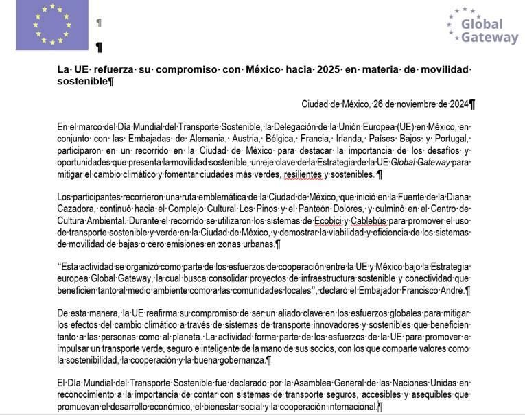 Unión Europea refuerza su compromiso con México hacia 2025 en materia de movilidad sostenible