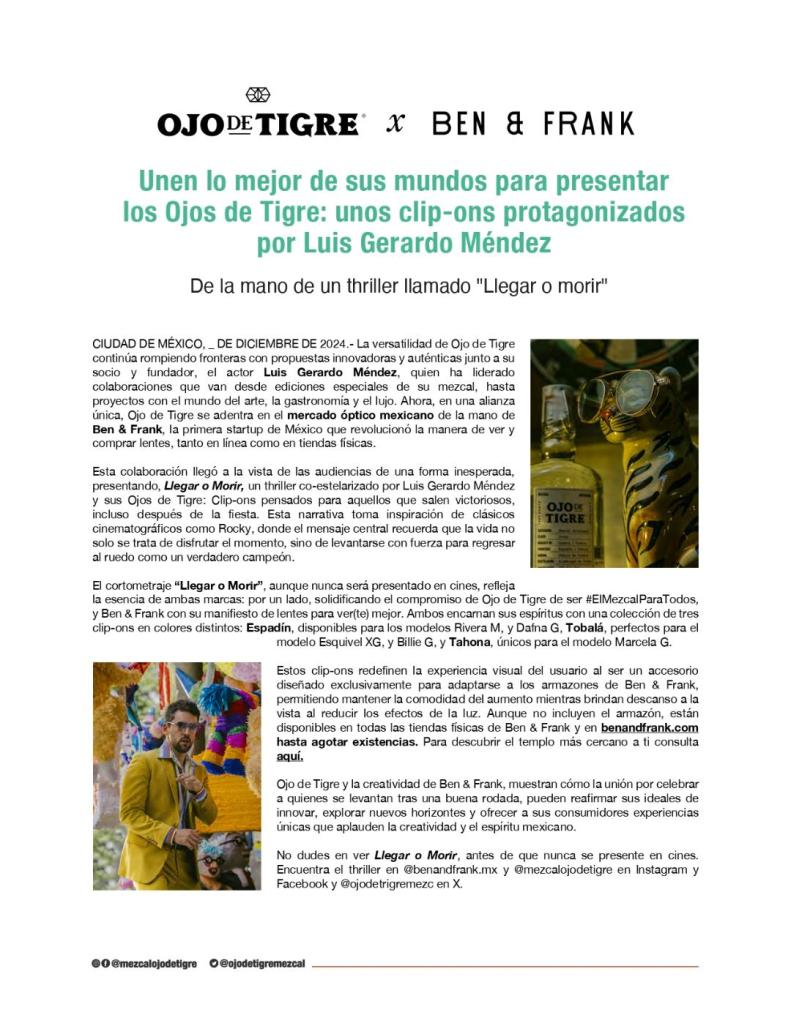 BEN & FRANK Y OJO DE TIGRE UNEN LO MEJOR DE SUS MUNDOS PARA PRESENTAR LOS OJOS DE TIGRE: UNOS CLIP-ONS PROTAGONIZADOS POR LUIS GERARDO MÉNDEZ COMPARTE:Tweet Compartir en Telegram (Se abre en una ventana nueva) Telegram Compartir en WhatsApp (Se abre en una ventana nueva) WhatsApp Más Imprimir (Se abre en una ventana nueva) Imprimir Compartir en Reddit (Se abre en una ventana nueva) Reddit Compartir en Tumblr Enviar un enlace a un amigo por correo electrónico (Se abre en una ventana nueva) Correo electrónico Me gusta Cargando... Relacionado Deja un comentario Cancelar la respuesta Δ