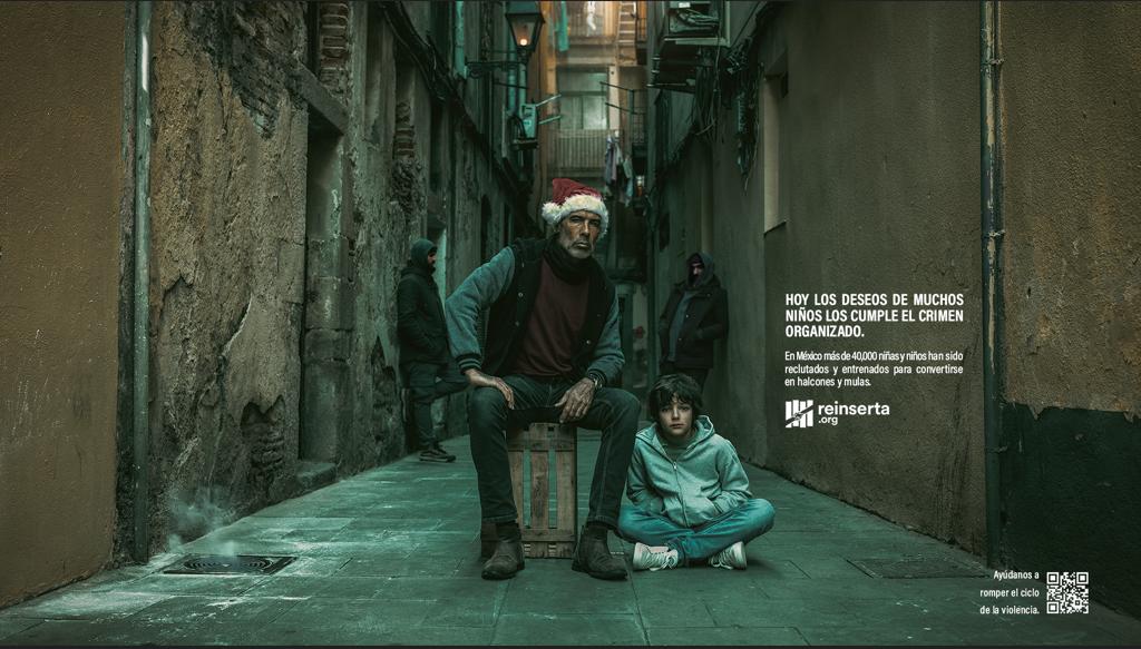 - En esta temporada decembrina la ONG Reinserta, en colaboración con Grey México, presentan una campaña gráfica para visibilizar que más de 140 mil niñas, niños y adolescentes están en riesgo de ser reclutadospor grupos delictivos.