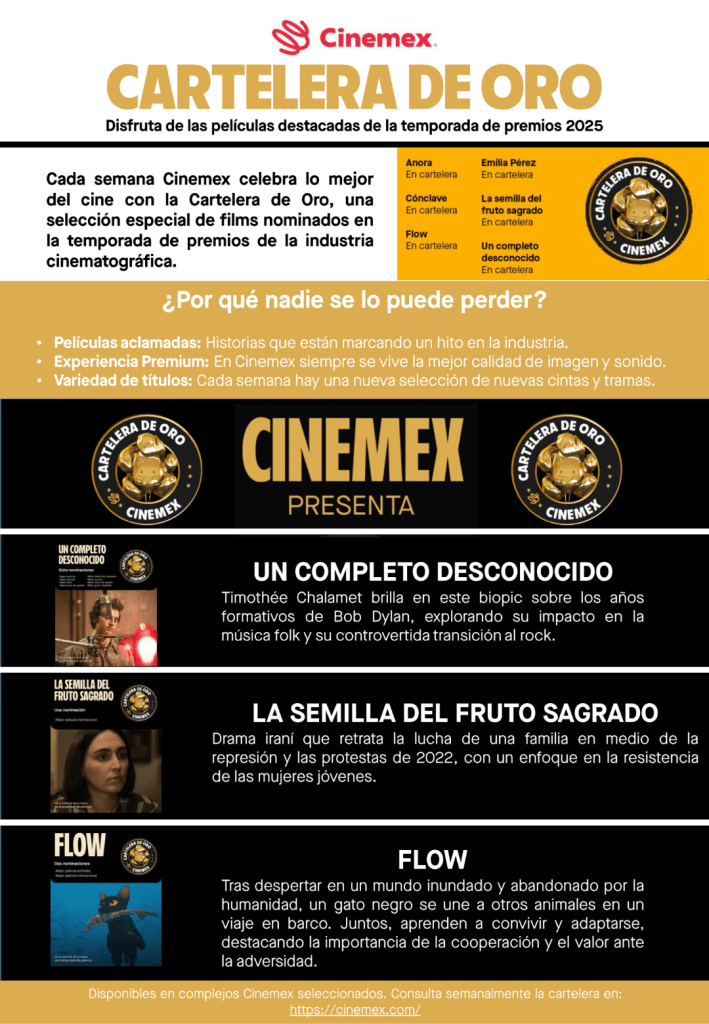 ¡La temporada de premios se vive con la Cartelera de Oro en Cinemex!