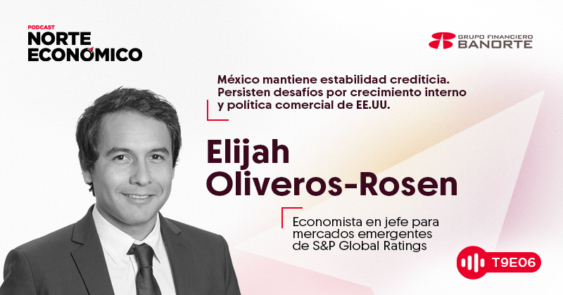 | oo00ooTRANSCRIPCIÓN [00:00:02.270] – Alejandro PadillaHola, mi nombre es Alejandro Padilla, economista en jefe y director general adjunto de Análisis en Banorte. [00:00:08.200] – Lucero ÁlvarezYo soy Lucero Álvarez, periodista y conductora de Norte Económico. [00:00:11.880] – Alejandro PadillaBienvenidos a un nuevo episodio de Norte Económico, el podcast de Banorte, donde analizamos los temas clave que impactan a la economía mexicana. En este episodio exploraremos las expectativas sobre México para este 2025, los efectos de la política comercial de Estados Unidos, el futuro del mere shoring, la relación con China y el rumbo de la política monetaria y fiscal. Todo esto bajo la perspectiva de una de las agencias calificadoras más importantes del mundo. Comencemos. [00:00:41.060] – Lucero ÁlvarezPara platicar sobre el tema, nos acompaña el Elijah Oliveros-Rosen, Economista en jefe para mercados emergentes de Standard & Pulse Global Ratings. Elijah, ¿cómo estás? Hola, bienvenido. [00:00:50.650] – Elijha OliverosGracias, Lucero. Gracias, Alex. Un placer estar en este podcast, fan ya de mucho tiempo. Entonces, gracias por tenerme en esta ocasión. [00:00:59.490] – Alejandro PadillaMuchas gracias Gracias por estar en esta ocasión con nosotros, Elijah. Siempre es un placer poder platicar contigo. Y bueno, comencemos hablando sobre la economía mexicana. [00:01:09.770] – Alejandro PadillaA medida que avanza el 2025, hemos visto que esta enfrenta un panorama de retos y oportunidades. [00:01:18.600] – Alejando PadillaY para poner contexto a nuestra audiencia, hay que recordar que en el 2024, el PIB de México creció 1.5%. Si bien impulsado por la demanda interna, principalmente, también hay que reconocer que hubo una pérdida de impulso en los últimos meses. Ahora, en este año, factores como la desaceleración global, el esfuerzo de consolidación fiscal y también incertidumbre sobre las políticas de Trump han comenzado a rediseñar una coyuntura económica compleja. Ante este escenario, ¿cómo ves la evolución de la economía mexicana en el 2025 y los siguientes años? Por favor, estimado Delaya. [00:01:55.670] – Elijah Oliveros-RosenSí, Alex. Antes que nada, creo que tenemos el actualizar nuestras proyecciones con la realidad que existe, como tú lo mencionas, un alto grado de incertidumbre, especialmente en torno a esta política comercial de Trump. Y no solo con México, sino con el resto del mundo. Y por lo tanto, los riesgos a nuestras proyecciones económicas son más altas de lo normal y nosotros juzgamos que los riesgos son principalmente a la baja. Ahora, aún sin considerar estos riesgos, queda claro que el ciclo de la economía mexicana está en medio de un proceso de transición de crecimientos arriba de su potencial, en algunos años, a crecimientos debajo de su potencial. Estimamos que la brecha llegó a su punto más alto, más alto positivo, a mediados de 2023 alrededor de 1.5% por arriba del potencial, de acuerdo a nuestros estimados. Y desde entonces, la brecha ha estado cayendo hasta entrar en terreno negativo en la segunda mitad del año pasado. Creemos que esta brecha se va a mantener en terreno negativo este año y qué tan negativo va a depender de cómo se materialice o no toda esta inciertidumbre que estamos viendo en este momento. Nuestra proyección puntual del PIB que hicimos a finales del año pasado, nosotros revisamos nuestros supuestos macroeconómicos una vez por trimestre y la próxima revisión, de hecho, es a finales de marzo. [00:03:25.360] – Elijah Oliveros-RosenEn nuestra revisión de finales del año pasado, teníamos el crecimiento económico pasando de 1.5% en los 2024 a 1.2% en los 2025. Sin duda, los riesgos al crecimiento económico, desde que publicamos a finales del año pasado, han incrementado. Entonces, esta proyección de 1.2% tiene mucho riesgo a la baja. Pero a grandes rasgos, hay dos componentes donde vemos un ajuste que va a resultar en un crecimiento del PIB menor este año. El primero es el consumo privado. Si observamos el consumo privado, ha estado creciendo por arriba del PIB en los últimos años, lo cual lo impulsó a que como proporción del PIB, crezcan niveles récords. Ahora, el consumo privado representa cerca del 71% del PIB. Si vemos cuál es el nivel estructural histórico, digamos, el promedio de la última década era algo cercano al 68% del PIB. Entonces, tuvimos un incremento de tres puntos porcentuales del PIB que fue impulsado por factores cíclicos. Por un lado, fue el tema de las remesas, que pasaron del 3% del PIB al 4% del PIB en su momento más alto. Y por otro lado, un mercado laboral muy fuerte, con una tasa de desempleo muy baja. [00:04:47.600] – Elijah Oliveros-RosenAmbos motores, las remesas y el empleo, han perdido un poco de dinamismo en los últimos meses y esperamos que esto continúe en los próximos trimestres, siendo un factor importante en esta desaceleración del PIB que esperamos. El segundo componente donde vemos un ajuste es la inversión fija, que también en los últimos años tuvo un desempeño muy positivo. La inversión fija ahora representa 25% del PIB. Antes de la pandemia, el nivel promedio era alrededor del 22% del PIB. Entonces, también tres puntos porcentuales por arriba de lo que estábamos acostumbrados. Si lo dividimos en pública y privada, de ese 25% del PIB, un poco más del 22% del PIB es inversión fija privada y un poco menos del 3% es pública. La pública, como tú lo mencionabas en el ejercicio fiscal, va a caer. Es parte del ejercicio que vamos a ver. La gran pregunta es qué va a pasar con la inversión fija privada. Y eso va a depender mucho de cómo se materialice toda esta incertidumbre en la cual estamos viviendo, principalmente el tema de la política comercial de Estados Unidos frente a México. [00:06:00.470] – Lucero ÁlvarezElijah, las políticas proteccionistas de Trump y todos estos cambios en la política de com