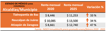 En el caso de la zona conurbada (Edomex), los municipios de Atizapán, Naucalpan y Tlalnepantla fueron los que tuvieron alzas de entre 47 y 33%.