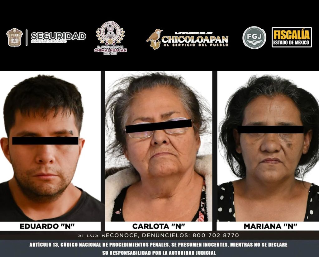 Chalco, Estado de México, 5 de abril de 2025.- En audiencia celebrada en los juzgados de Chalco, la Autoridad Judicial estableció prisión preventiva justificada para Carlota “N”, Eduardo «N», Mariana «N», quienes de manera probable habrían intervenido en los hechos perpetrados el pasado 1 de abril, donde dos masculinos adultos fueron privados de la vida por disparo de arma de fuego y un adolescente resultó lesionado.