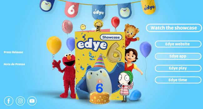 - Edye, la plataforma premium de contenido para niños en edad preescolar, celebra sus primeros 6 años ofreciendo la programación infantil de mayor calidad y alcanzando 14 millones de suscriptores en los Estados Unidos y América Latina.
