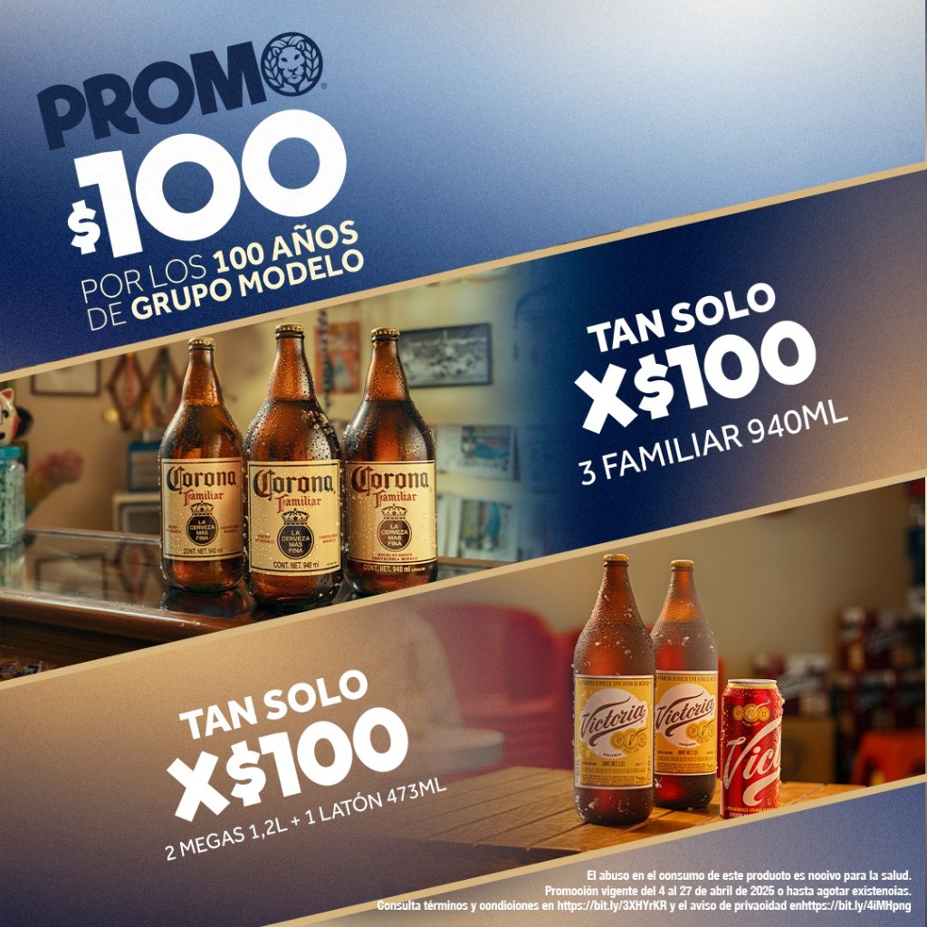 Ciudad de México, abril de 2025 – Como parte del inicio de las celebraciones por su centenario, Grupo Modelo lanza «Promo 100», una iniciativa creada para los consumidores mexicanos y que, además, busca apoyar a los negocios que han sido parte fundamental de la historia de la compañía. Esta acción forma parte de su compromiso por seguir fortaleciendo una de las industrias más relevantes del país, que genera más de 55 mil empleos y representa el 1.6% del PIB nacional.
